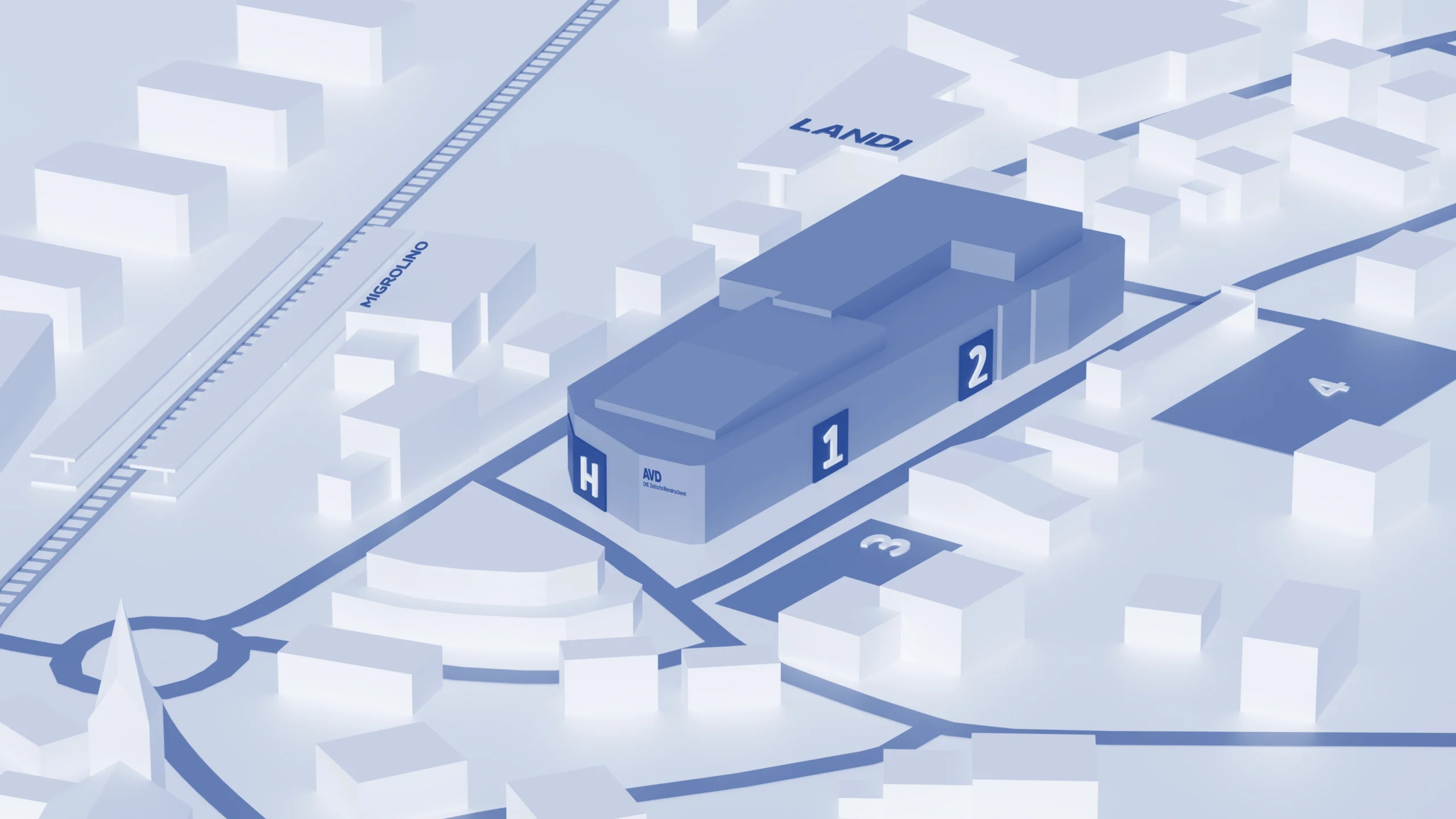 H Haupteingang1. Warenausgang2. Wareneingang3. Besucherparkplatz4. Mitarbeiterparkplatz